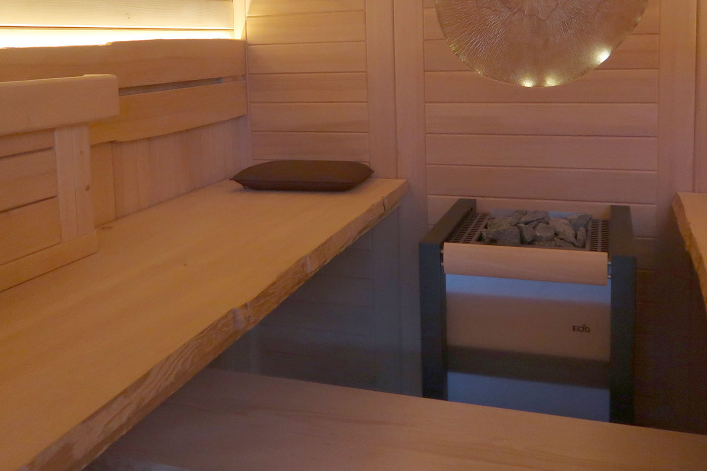- Saunaofen: EOS Herkules S60 12 kW + Saunasteuerung